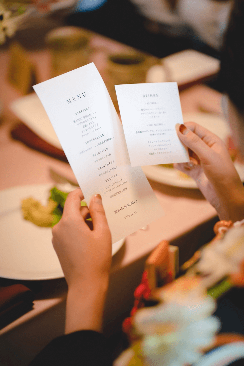 新郎新婦様からのご希望により、前菜は大皿で提供させていただき、皆さんでシェアされるスタイルから始まりました。ご親族、ご友人との和やかなお食事の場には、終始温かな雰囲気が感じられてとても素敵な時間でした。