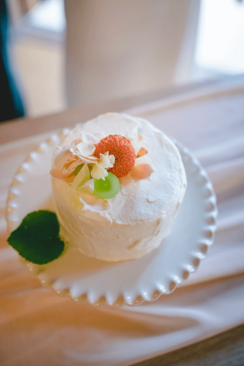 お二人サイズのミニウェディングケーキも作らせていただきました。