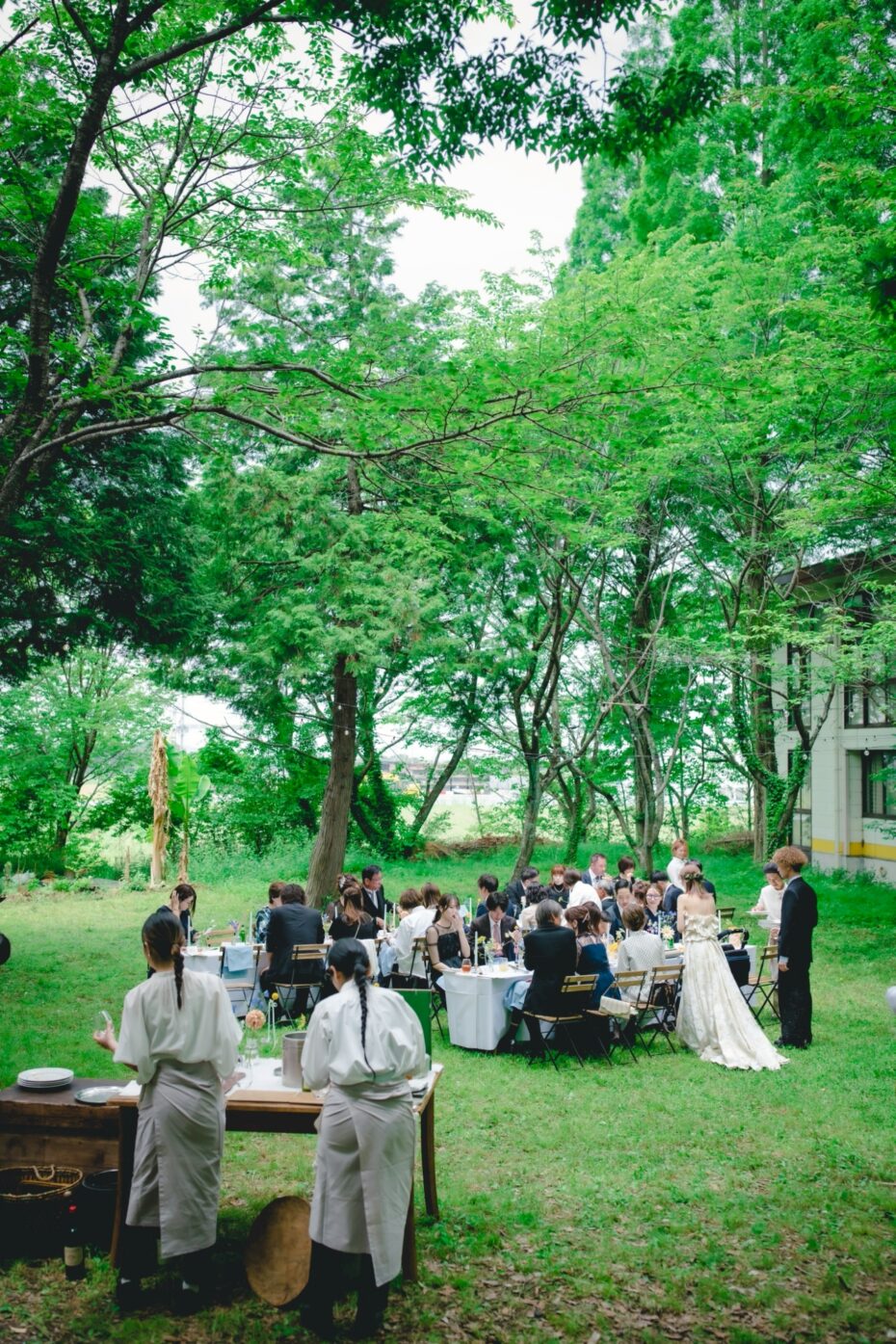 1日を通して心地よいお天気で、美しい緑に囲まれた森の中のウェディングはとても素敵でした。