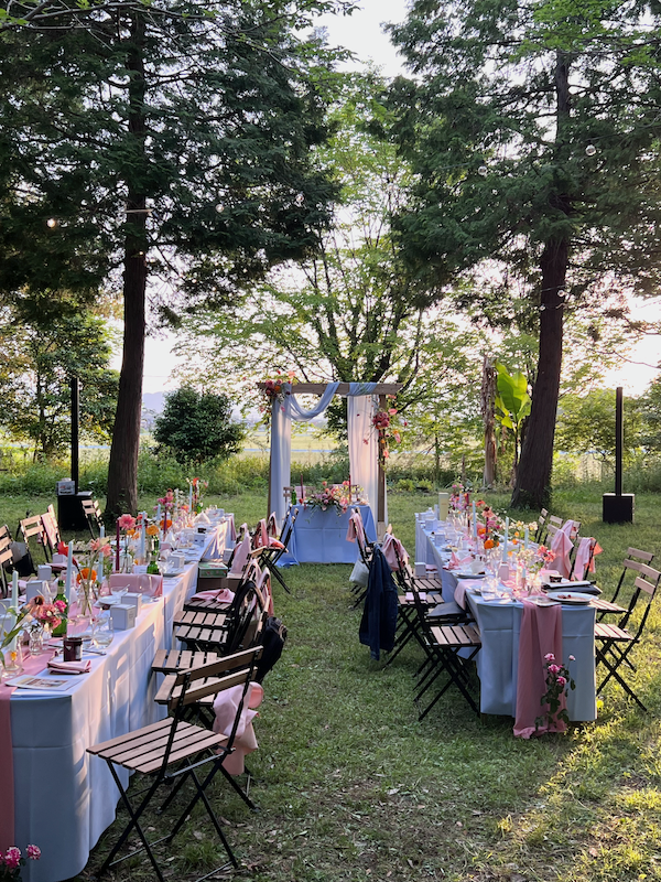 滋賀県東近江にあるBASE FOR RESTにて開かれた結婚式でお食事を担当させていただきました。